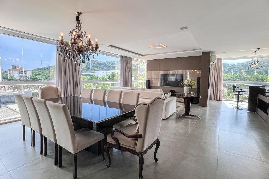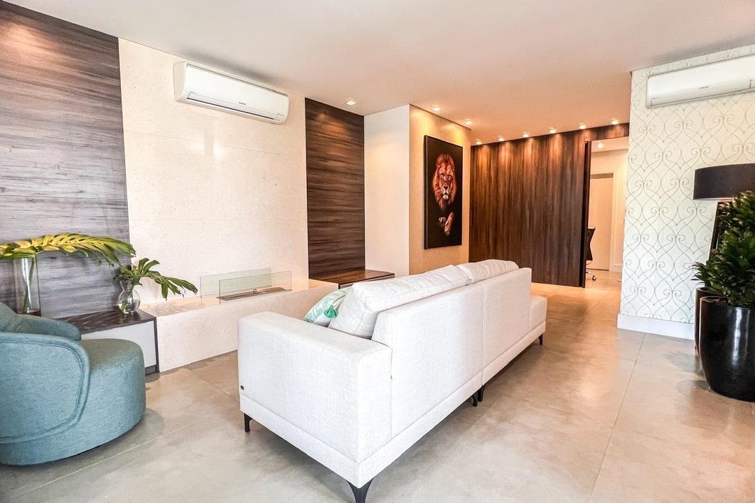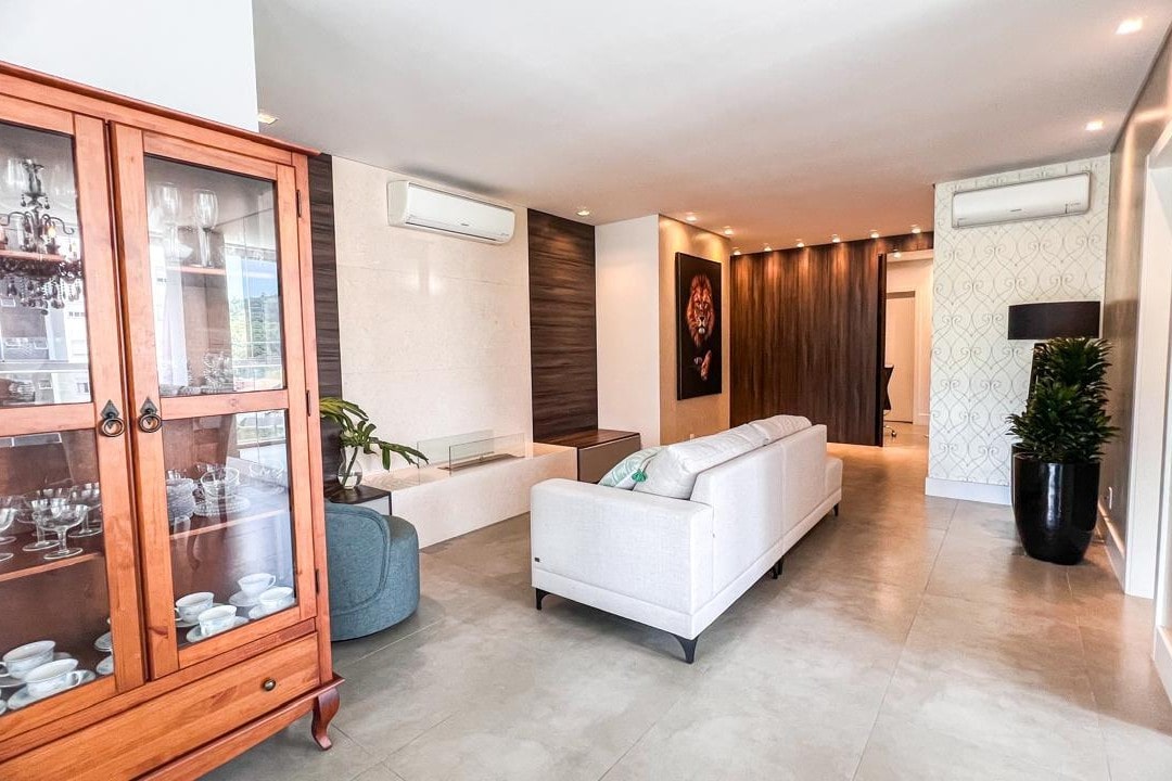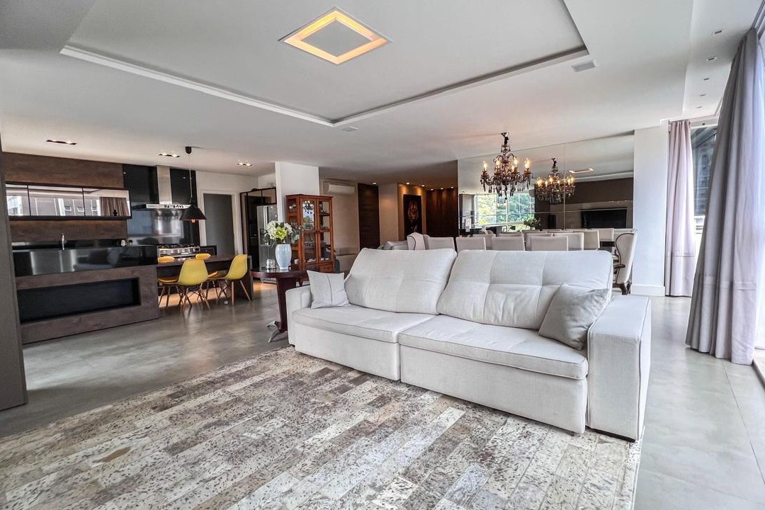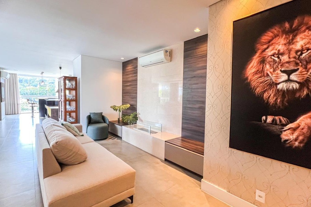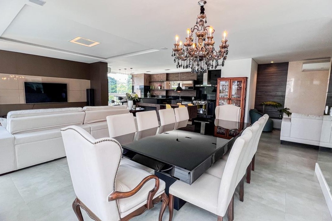 Com mais de 220m² privativos, este imóvel mobiliado apresenta ambientes amplos e integrados, destacando a área gourmet e a lareira, perfeitos para momentos especiais com família e amigos.