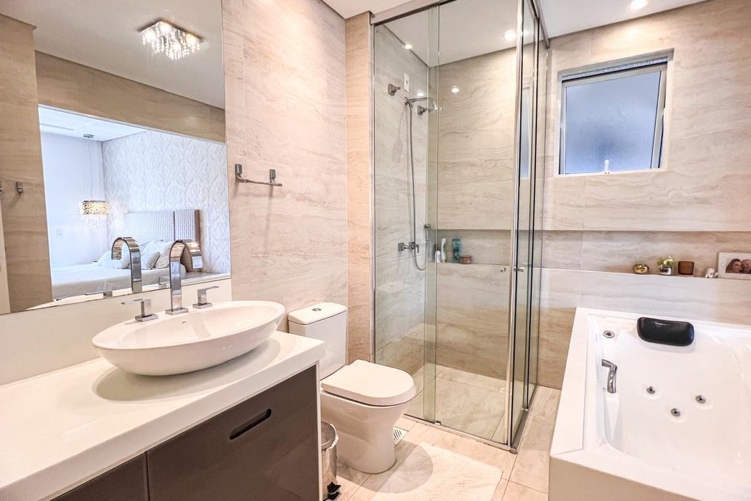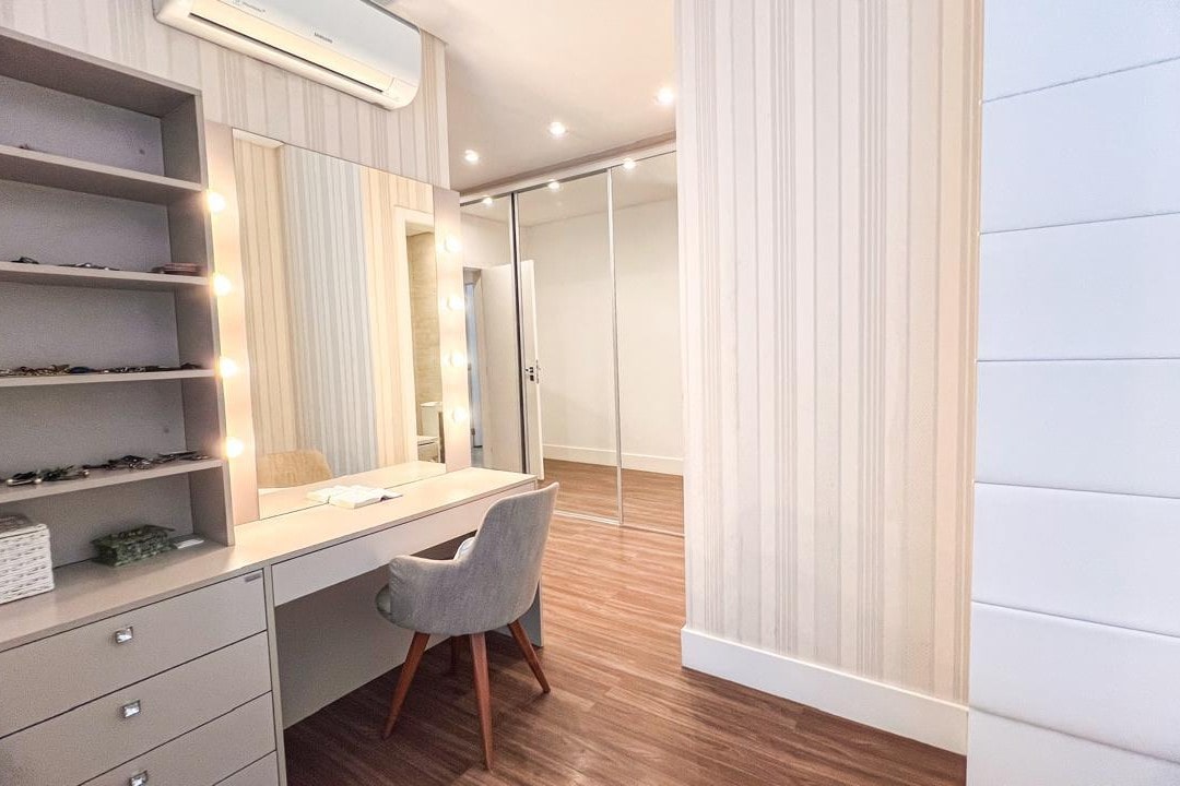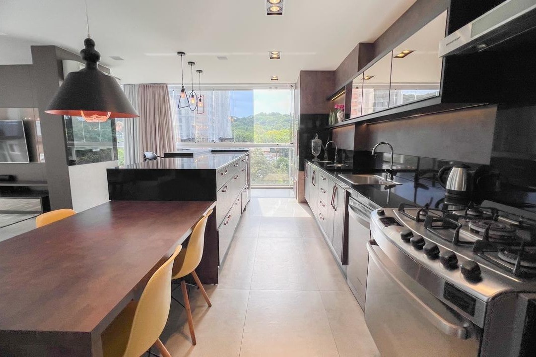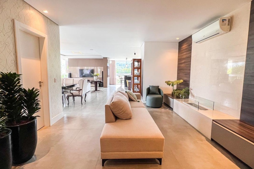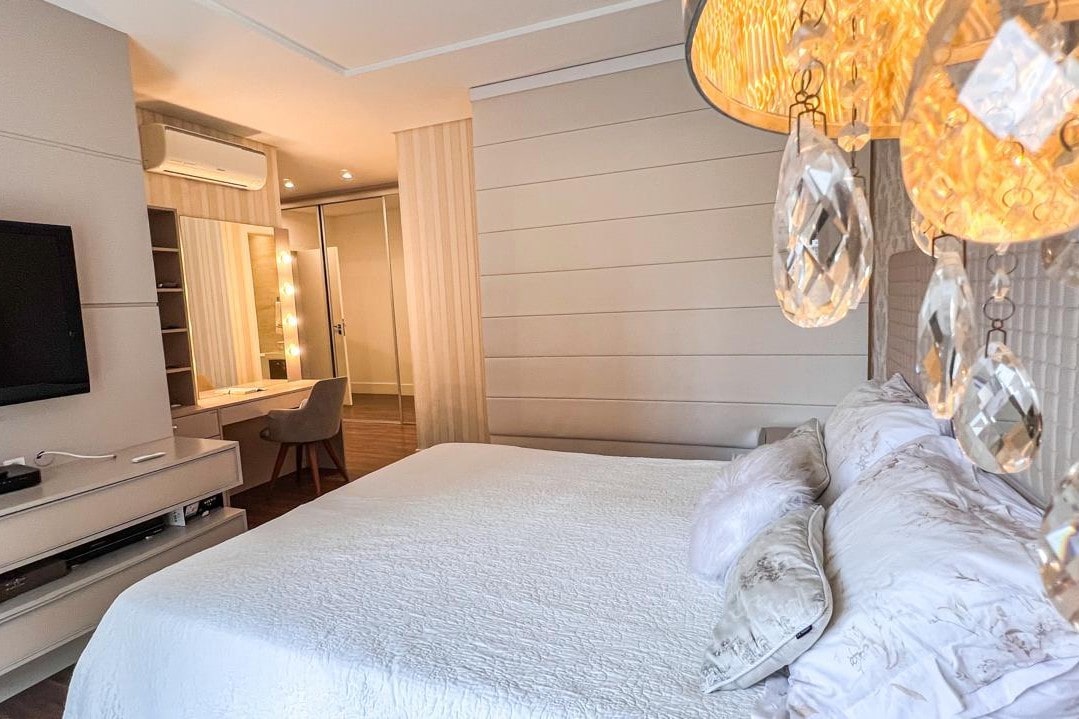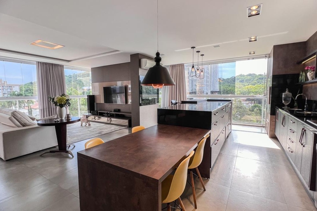 Com mais de 220m² privativos, este imóvel mobiliado apresenta ambientes amplos e integrados, destacando a área gourmet e a lareira, perfeitos para momentos especiais com família e amigos.