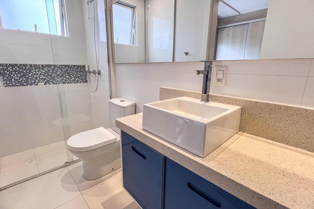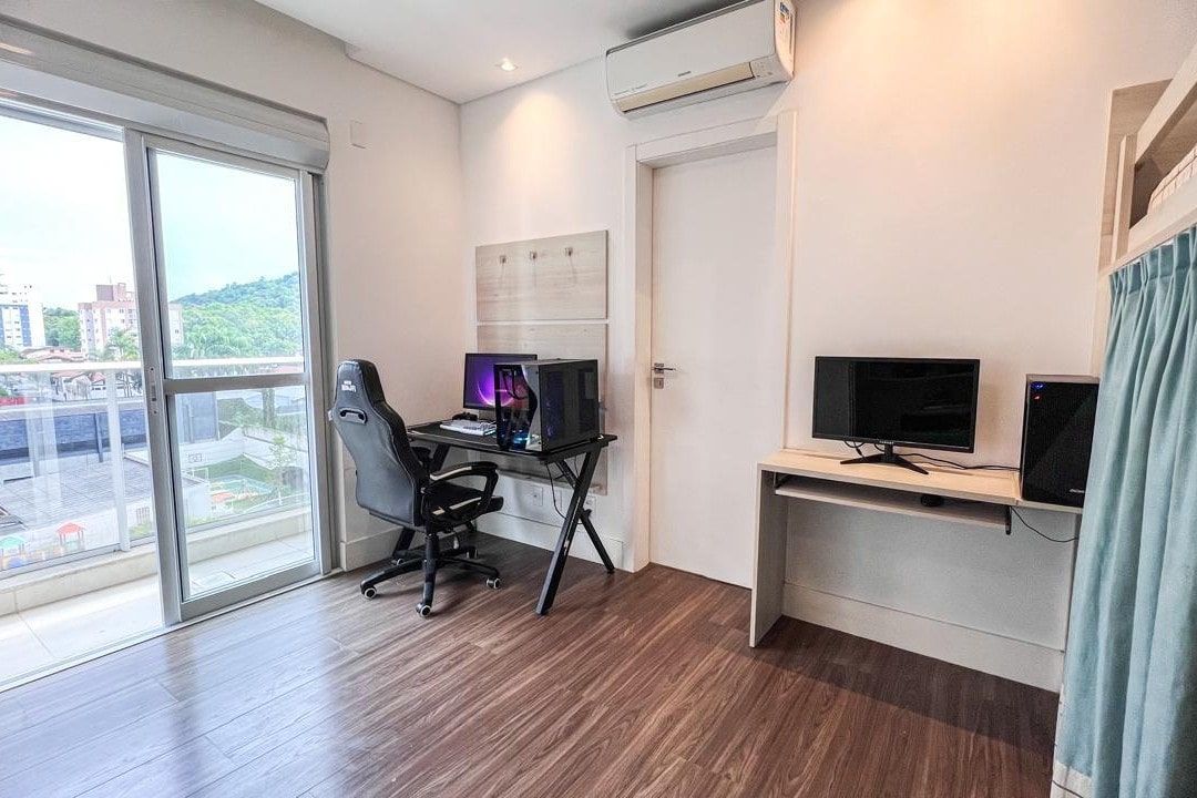 O apartamento possui 1 suíte master e 2 suítes adicionais, todas planejadas para oferecer privacidade e conforto. Conta ainda com lavanderia espaçosa, home office moderno e duas entradas, garantindo praticidade no dia a dia.